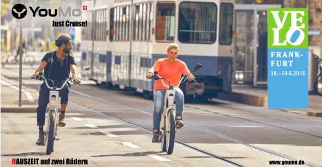 Erlebe das unbeschreibliche Fahrgefühl unserer YouMo eCruiser auf der VeloFrankfurt.